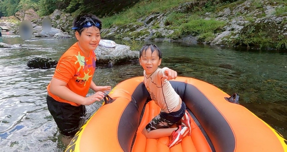 ボートで遊んだり、顔をつけて泳いでみたり、それぞれ思い思いに川遊びを満喫しました💦