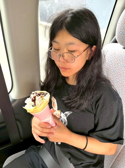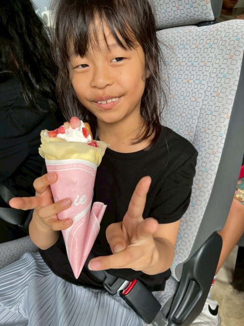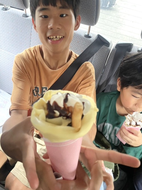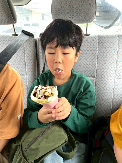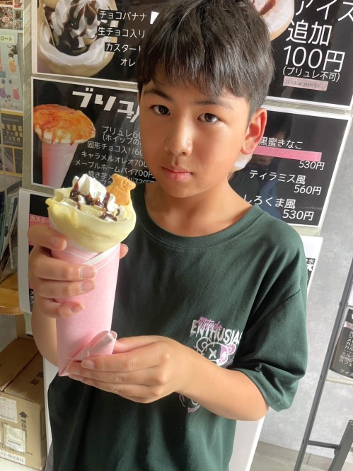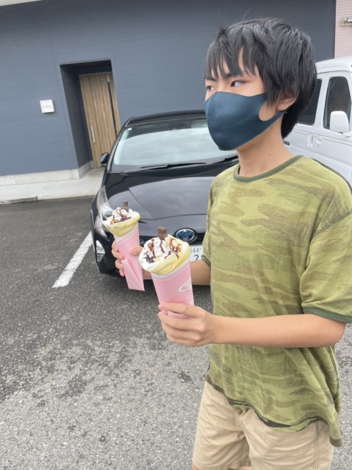 帰りにはクレープを買ってもらってニコニコ☺️