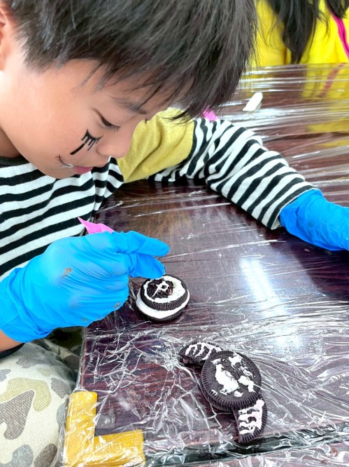 お次は・・・ハロウィンならではの、おやつ作り🍪