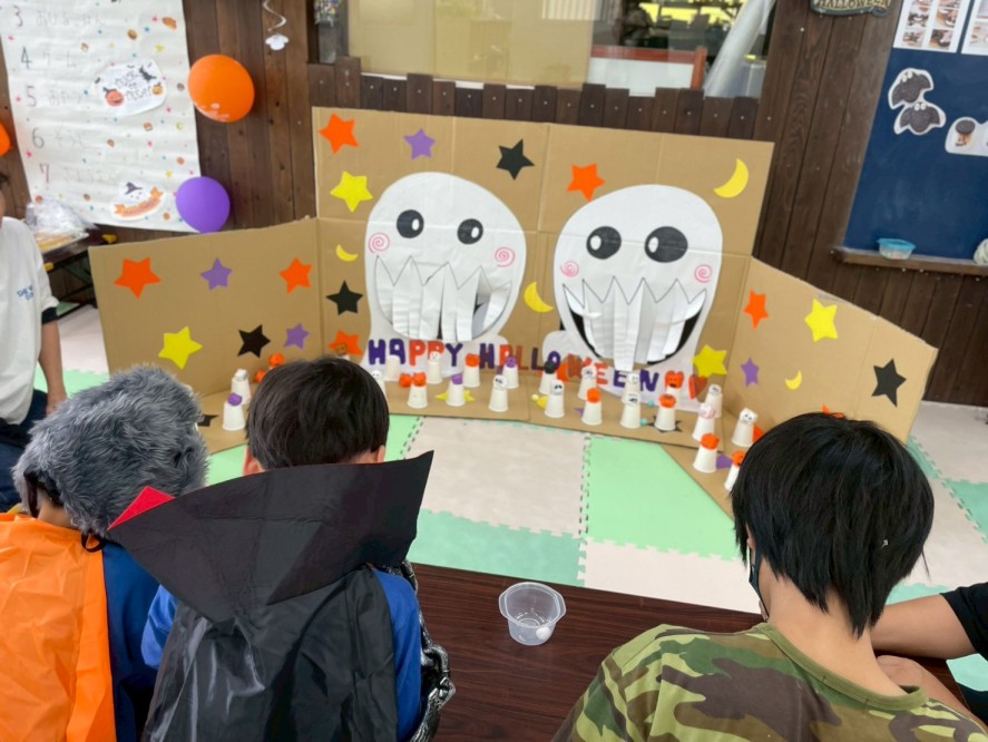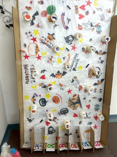 紙風船を狙ったり、オバケの口の中に入れて点数を競います👻